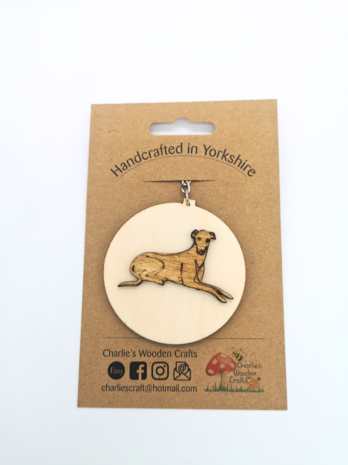 This Greyhound keyring presented on a kraft card back is sure to be a great addition to your keys. It would also make a lovely gift that can be posted directly to the recipient with a gift note optional.